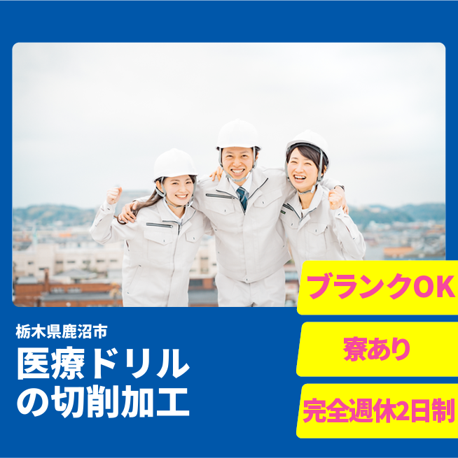 ※実際と異なるケースもございます。 交通費 支給あり 応募の流れ 本ページ内<応募する>ボタンより、必要項目をご入力の上、ご応募ください。 勤務地 【勤務地】栃木県鹿沼市下日向 勤務時間 【勤務地】(日勤固定)