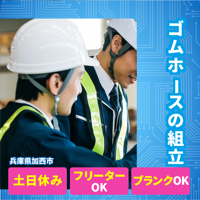 ホース組立加工業務:ブリヂストン産業用ゴムホース製造オペレータ