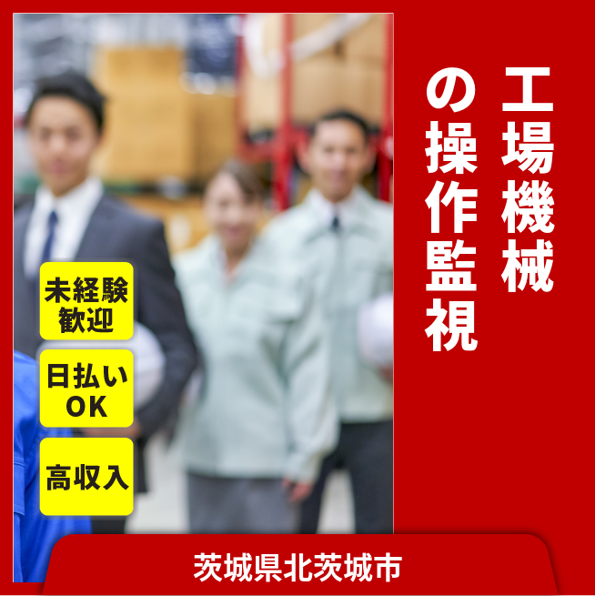 給与詳細 月収例 260,000円 日給例 11,600円 勤務地 茨城県北茨城市 仕事内容 【製造機械オペレーターのお仕事】