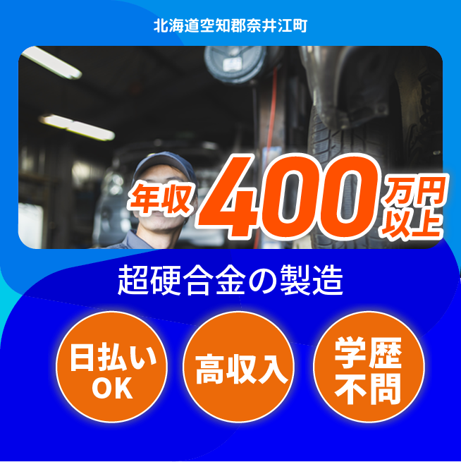 ※実際と異なるケースもございます。 交通費 支給あり 応募の流れ 本ページ内<応募する>ボタンより、必要項目をご入力の上、ご応募ください。 勤務地 【勤務地】北海道空知郡奈井江町奈井江 勤務時間 【勤務地】①08:00~17:00 休憩60分