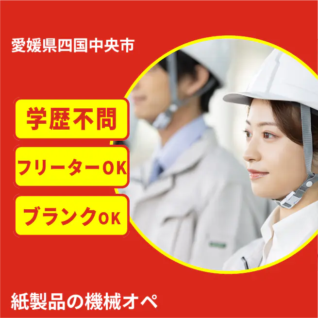 ※実際と異なるケースもございます。 交通費 支給あり 応募の流れ 本ページ内<応募する>ボタンより、必要項目をご入力の上、ご応募ください。 勤務地 【勤務地】愛媛県四国中央市三島紙屋町 勤務時間 【勤務地】①07:00~15:15 休憩60分