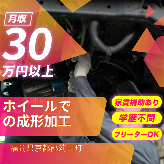 給与詳細 月収例 300,000円 時給例 1,200円 勤務地 福岡県京都郡苅田町 仕事内容 タイヤホイール製造