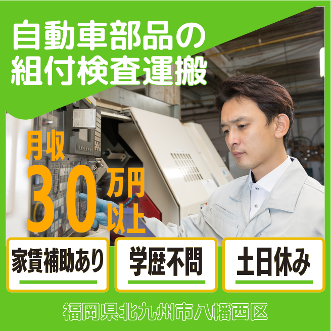 総支給例:30万以上可(1,500円×8H×20日+残業1,875円×10H+休出1,875円×1日+深夜375円×50H+交通費) 交通費 支給あり 応募の流れ 本ページ内<応募する>ボタンより、必要項目をご入力の上、ご応募ください。 勤務地 【勤務地】福岡県北九州市八幡西区本城5丁目 勤務時間 【勤務地】8:40~17:25