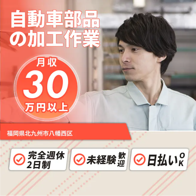給与詳細 月収例 300,000円 日給例 12,000円 勤務地 福岡県北九州市八幡西区 仕事内容 【業務内容】