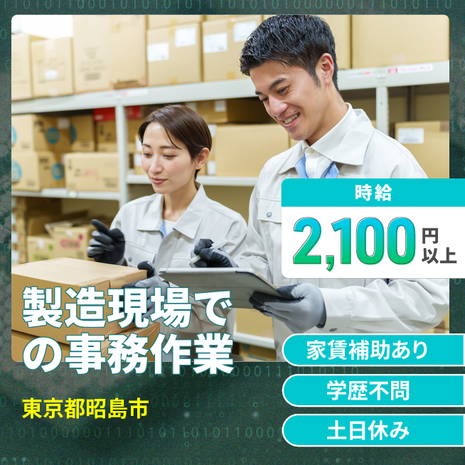 給与詳細 月収例 237,000円 日給例 11,200円 勤務地 東京都昭島市 仕事内容 【概要】