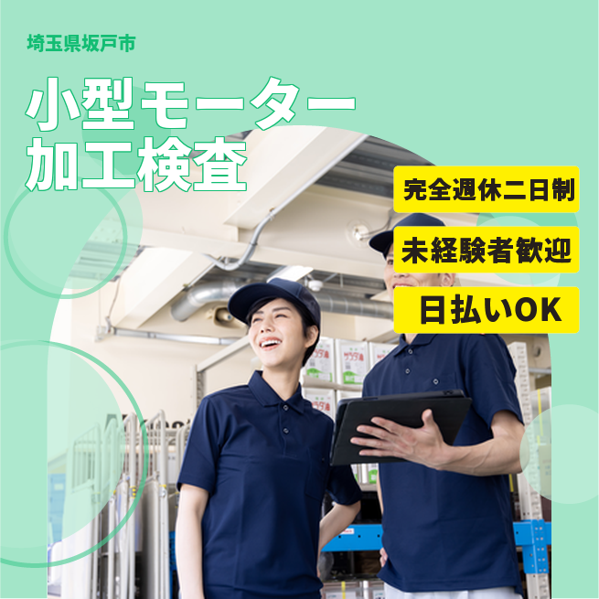 週休2日で安心【小型モーター加工検査】