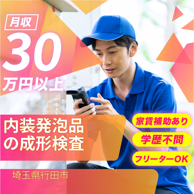 給与詳細 月収例 303,000円 日給例 11,600円 勤務地 埼玉県行田市 仕事内容 【概要】