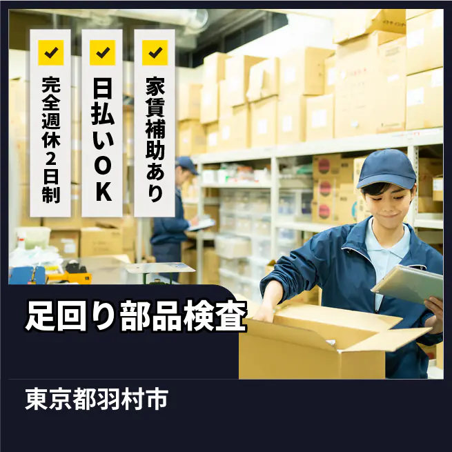給与詳細 月収例 272,000円 日給例 11,200円 勤務地 東京都羽村市 仕事内容 【概要】