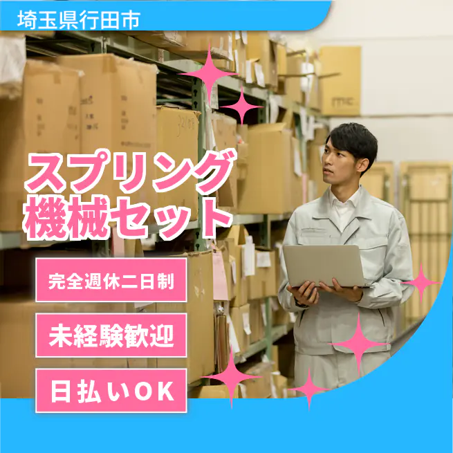サスペンション用スプリングの機械セット・詰め込み・補助業務。
