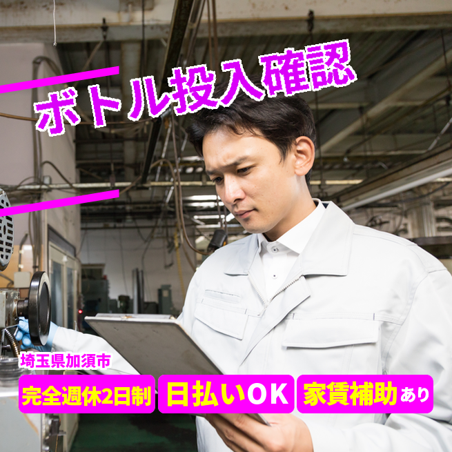 給与詳細 月収例 254,000円 日給例 11,200円 勤務地 埼玉県加須市 仕事内容 【概要】