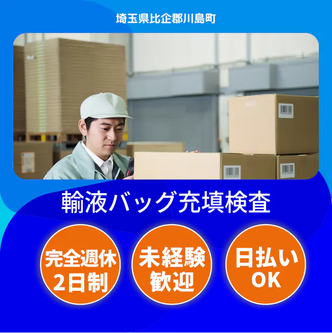 給与詳細 月収例 281,000円 日給例 12,000円 勤務地 埼玉県比企郡川島町 仕事内容 【概要】