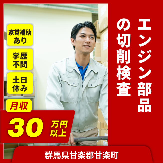 給与詳細 月収例 300,000円 日給例 10,400円 勤務地 群馬県甘楽郡甘楽町 仕事内容 【自動車用エンジン部品、駆動部品の加工マシンオペレーター】