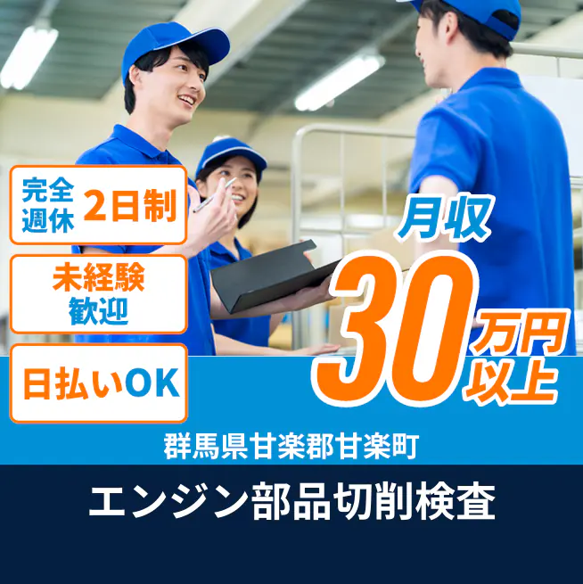 給与詳細 月収例 300,000円 日給例 10,400円 勤務地 群馬県甘楽郡甘楽町 仕事内容 【概要】