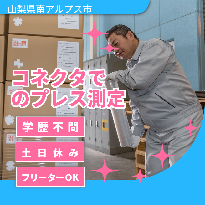 給与詳細 月収例 215,000円 時給例 1,200円 勤務地 山梨県南アルプス市 仕事内容 【コネクタ金具プレス機オペレーター、及び検査】