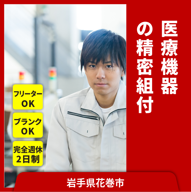 給与詳細 月収例 212,000円 時給例 1,200円 勤務地 岩手県花巻市 仕事内容 ■精密機器(医療機器)組立、検査、ピッキング作業