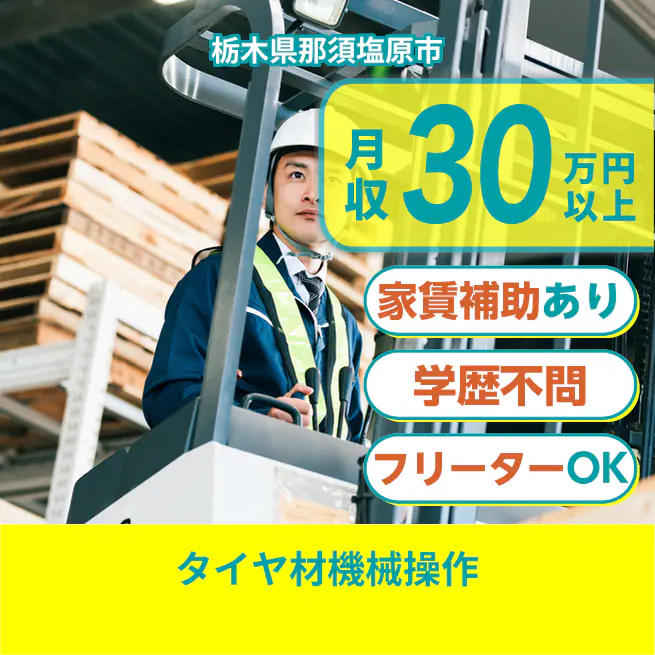 タイヤ製造に関わる材料供給・機械操作・加工機オペを担当(自動車通勤可・スタッドレス必須)。