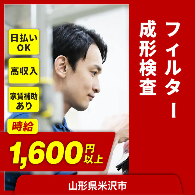 給与詳細 月収例 288,000円 時給例 1,600円 勤務地 山形県米沢市 仕事内容 【概要】