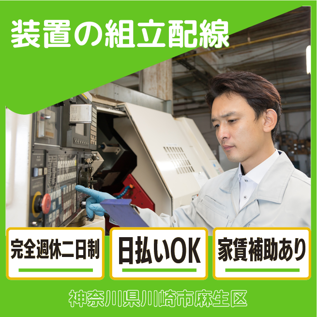 半導体製造装置等の組立・検査(CR)。仕様書に沿って組立・配線(圧着/半田)を行います。