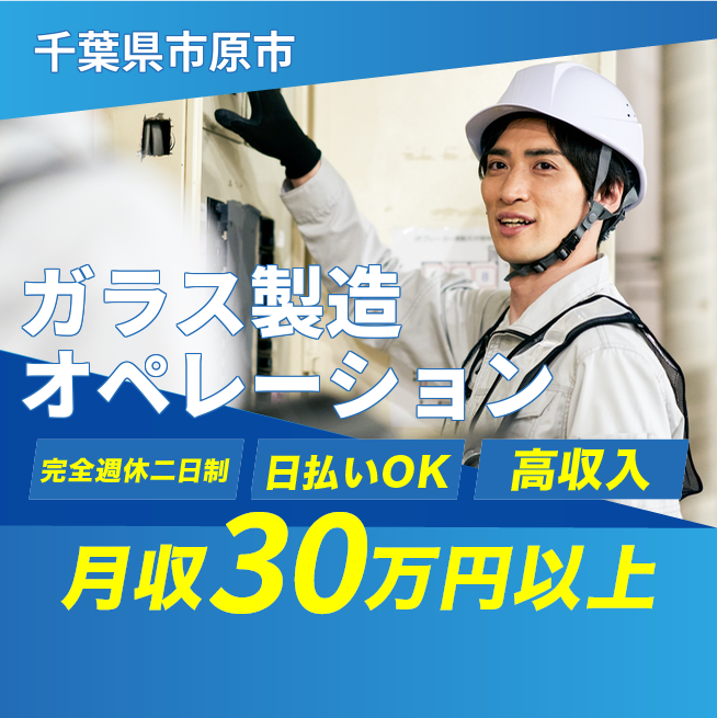 ガラス生産ラインのオペレーターとして、製造プロセスの管理と補助業務を担当します。