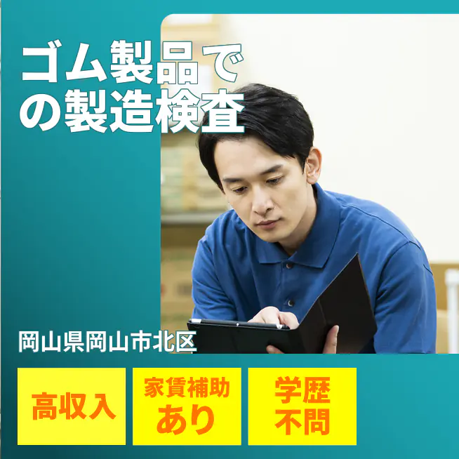 給与詳細 月収例 270,000円 日給例 11,200円 勤務地 岡山県岡山市北区 仕事内容 手のひらサイズのゴム製品製造