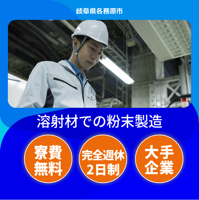 給与詳細 月収例 270,000円 日給例 12,000円 勤務地 岐阜県各務原市 仕事内容 LED・ディスプレイ・パワーエレクトロニクス用部品の表面加工分野やパウダー技術を活かした応用分野への研磨・研削材の開発また、鉄鋼、航空機および半導体等さまざまな業界の溶射用途向けに溶射材の製造を行います