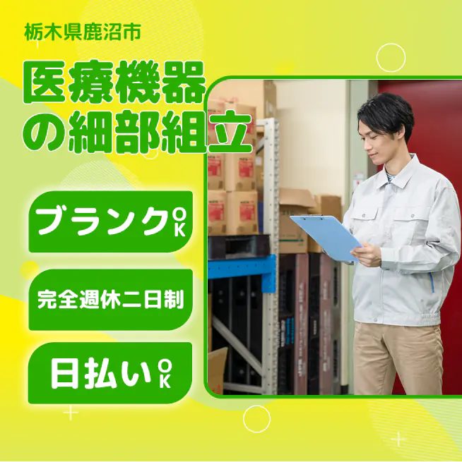 医療機器の加工・組立・検査・梱包。適性に応じ配属、細かい作業中心。