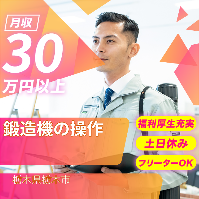 給与詳細 月収例 317,000円 日給例 12,000円 勤務地 栃木県栃木市 仕事内容 【温感・冷間鍛造機(プレス機)オペレーター】