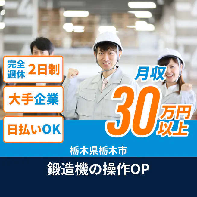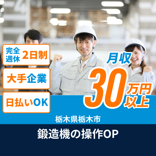 給与詳細 月収例 317,000円 日給例 12,000円 勤務地 栃木県栃木市 仕事内容 【概要】