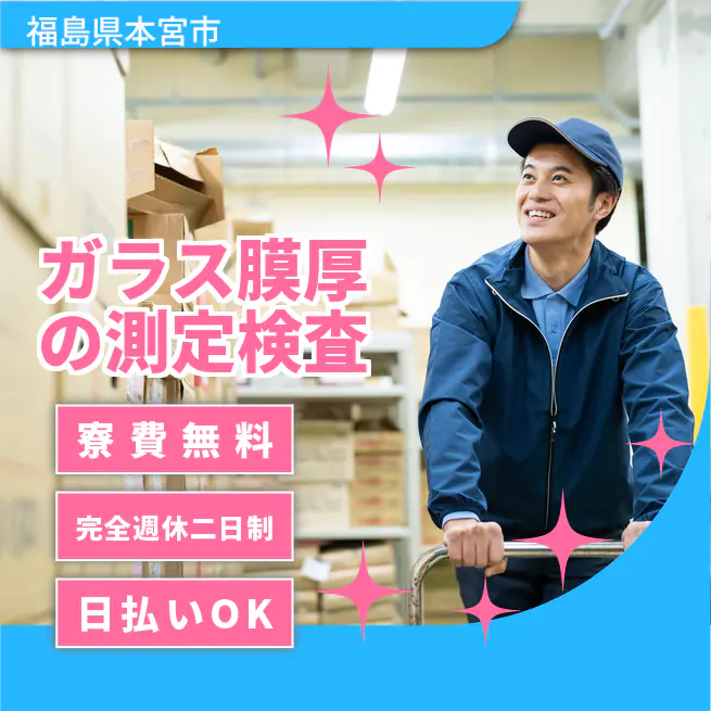 半導体装置向けガラス部品の製造(洗浄・成膜・検査/ケース入替)。クリーン環境。