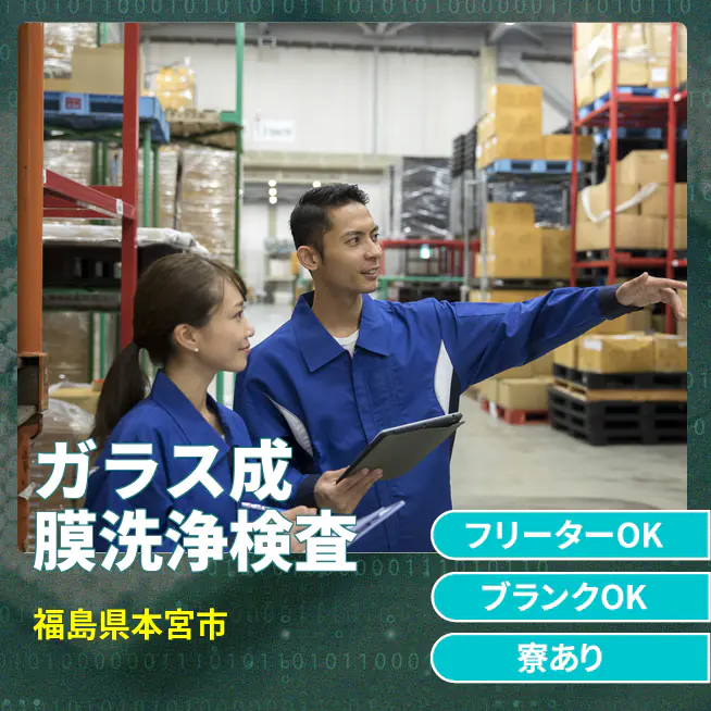 半導体装置向けガラス部品の製造(洗浄・成膜・検査/ケース入替)。クリーン環境。