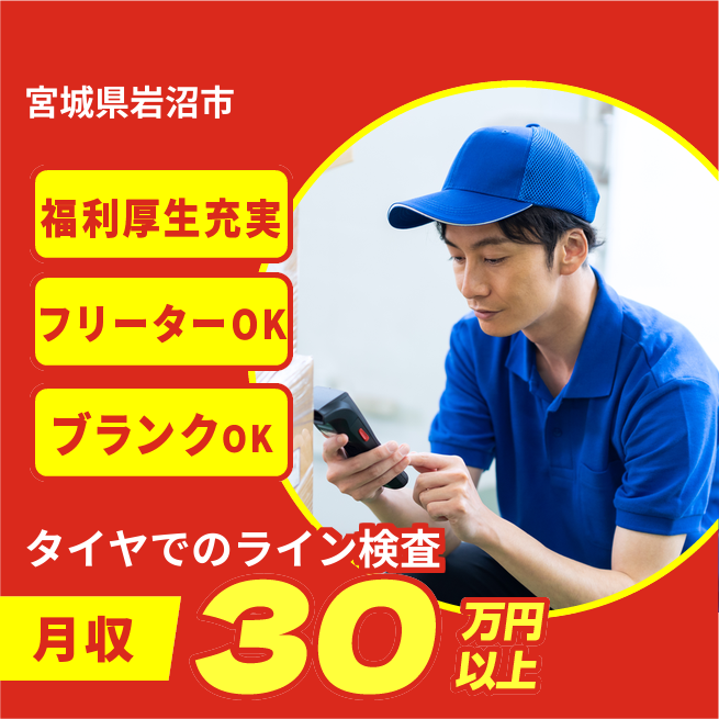 給与詳細 月収例 313,000円 日給例 11,600円 勤務地 宮城県岩沼市 仕事内容 【タイヤ部材生産ラインOP】部材生産・組立・検査・運搬