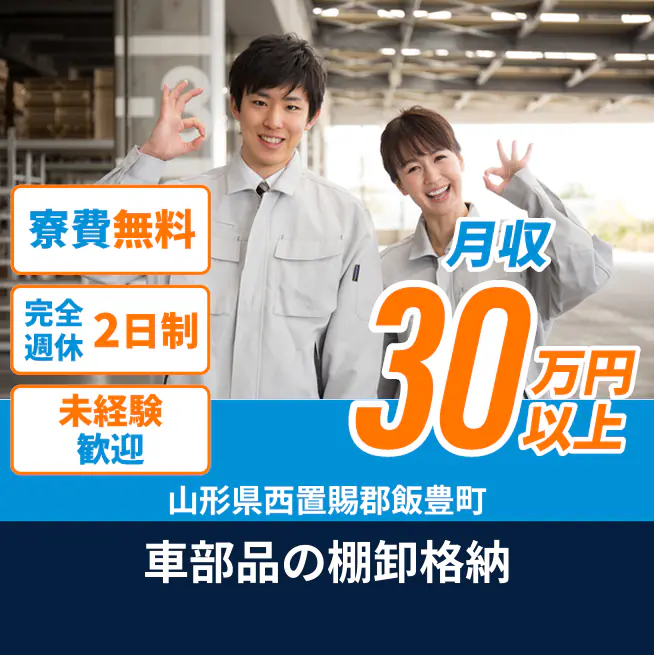 給与詳細 月収例 305,000円 日給例 12,400円 勤務地 山形県西置賜郡飯豊町 仕事内容 【業務内容】