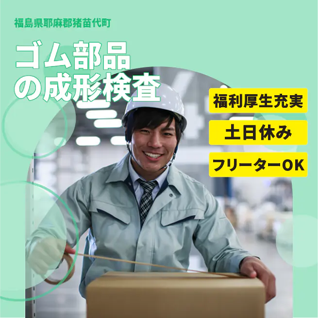 自動車用ゴム製品の加工・成形・仕上げ・選別・包装・検査。未経験歓迎・寮費無料。