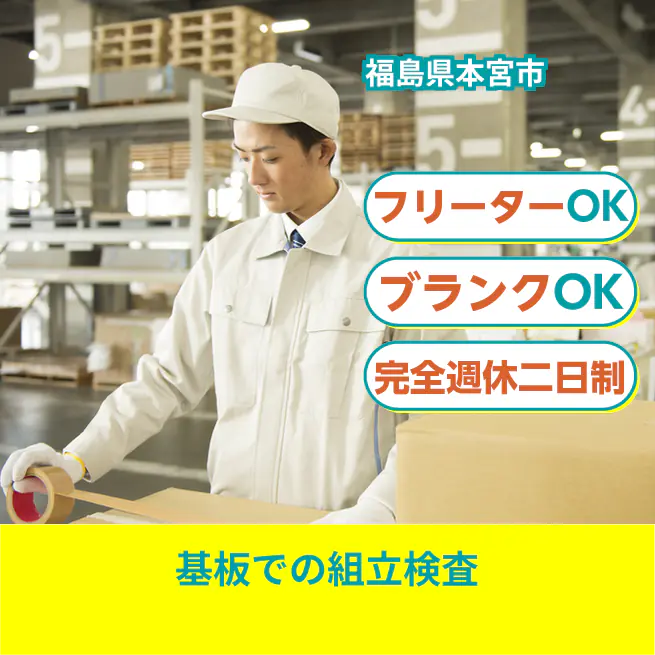 給与詳細 月収例 204,000円 時給例 1,120円 勤務地 福島県本宮市 仕事内容 【電子基板製造・組立】部品取付・ケーブル接続・検査