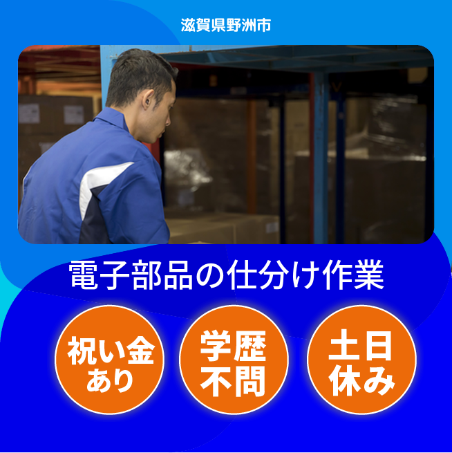 給与詳細 月収例 181,000円 時給例 1,131円 勤務地 滋賀県野洲市 仕事内容 部品工場でのピッキング