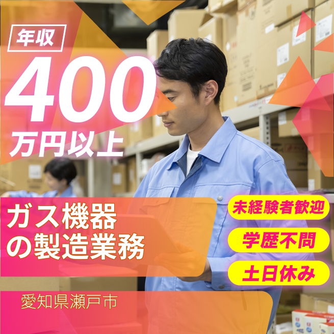 給与詳細 年収例 2,400,000円 日給例 10,000円 勤務地 愛知県瀬戸市 仕事内容 ガス機器製造工場での各種業務(組立・検査・ピッキング)