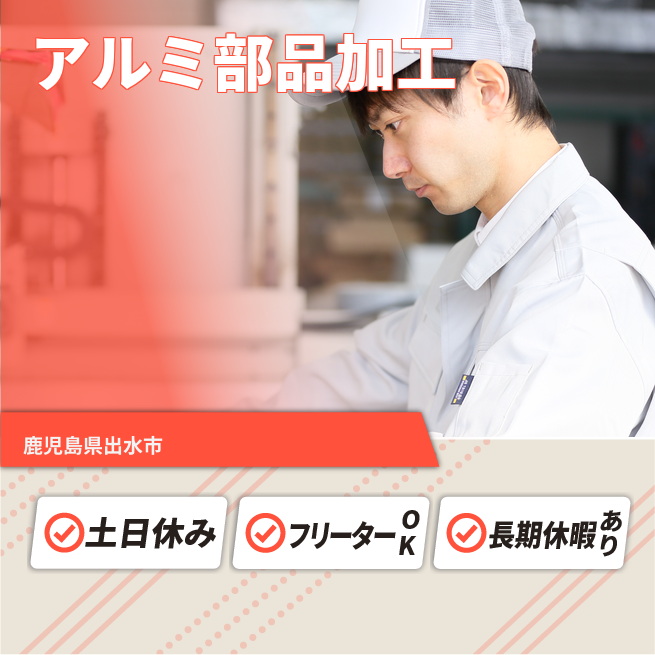 家族おもいやり手当 公開日 2025年07月01日 寮 部屋タイプ 詳細は面接時にお問い合わせください 家具・備品 詳細は面接時にお問い合わせください 家賃 金額は物件により異なります ★製造未経験からキャリアアップを目指す