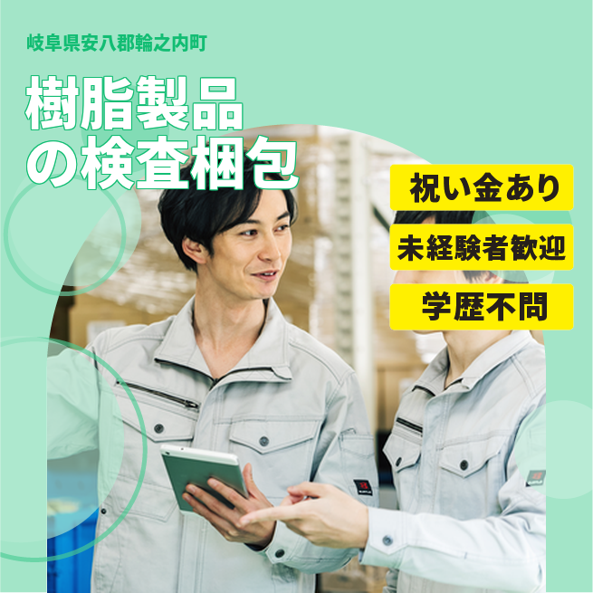 樹脂製品の検査・簡易加工・梱包。装置オペや運搬を担う場合あり。