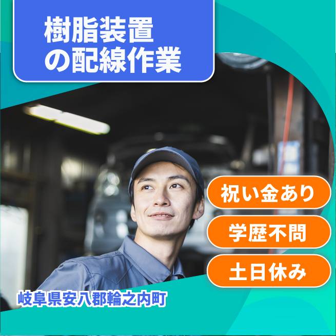 給与詳細 月収例 192,000円 時給例 1,200円 勤務地 岐阜県安八郡輪之内町 仕事内容 樹脂製造装置の電気配線の作成