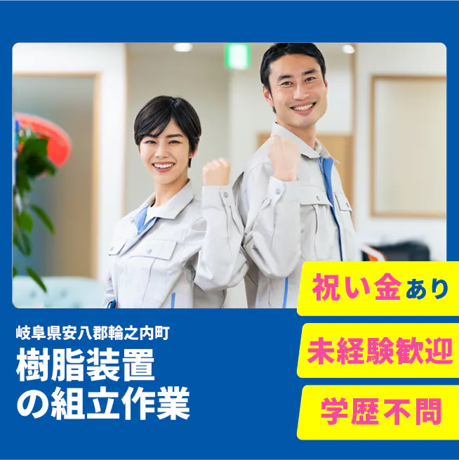 約291万円 交通費 支給あり 応募の流れ 本ページ内<応募する>ボタンより、必要項目をご入力の上、ご応募ください。 勤務地 【勤務地】岐阜県安八郡輪之内町実際の就業先:岐阜県安八郡輪之内町 勤務時間 【勤務地】【日勤】