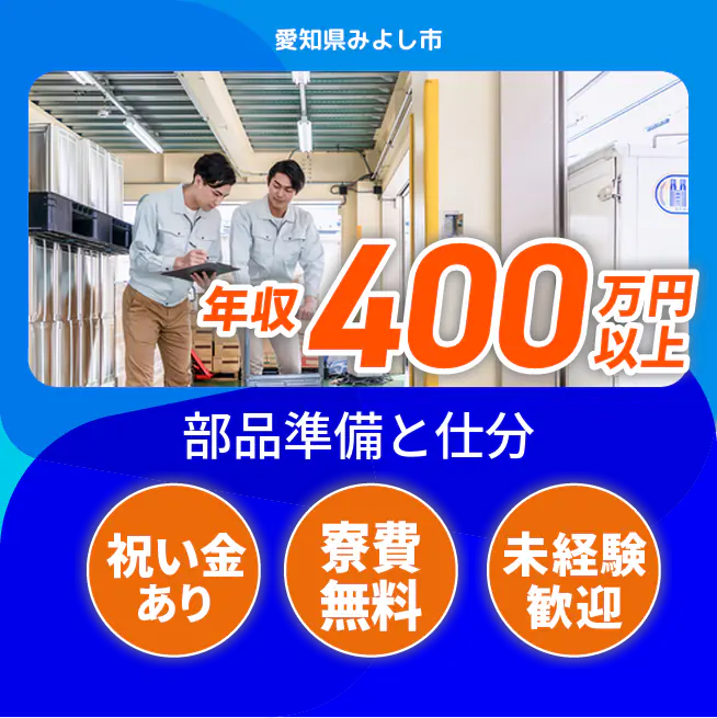給与詳細 年収例 4,050,000円 日給例 12,335円 勤務地 愛知県みよし市 仕事内容 【概要】