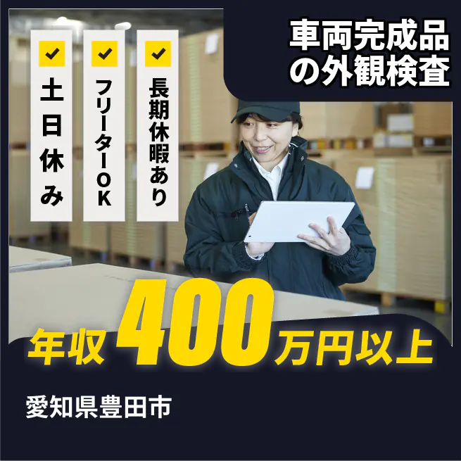 給与詳細 年収例 4,050,000円 日給例 12,335円 勤務地 愛知県豊田市 仕事内容 【業務概要】