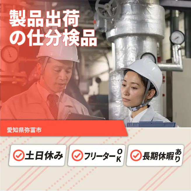 給与詳細 月収例 223,000円 日給例 11,150円 勤務地 愛知県弥富市 仕事内容 【業務概要】