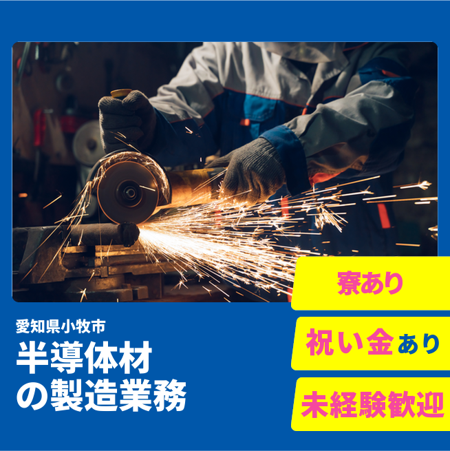 給与詳細 月収例 212,000円 日給例 10,600円 勤務地 愛知県小牧市 仕事内容 半導体製造装置用のウエハー製造