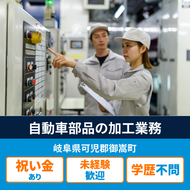 給与詳細 月収例 192,733円 時給例 1,205円 勤務地 岐阜県可児郡御嵩町 仕事内容 自動車部品製造の機械オペレーション
