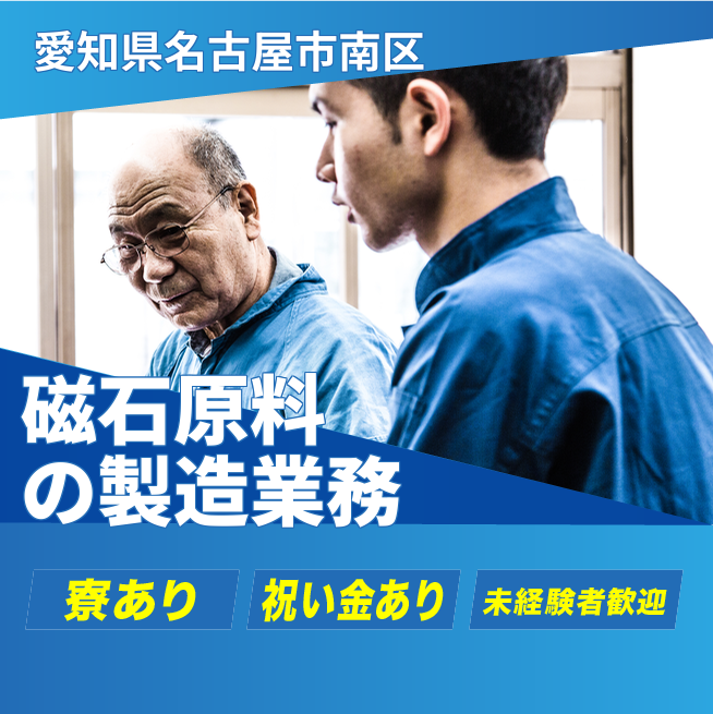 磁石の原料に関わる製品工程での機械オペレーターをお任せします。