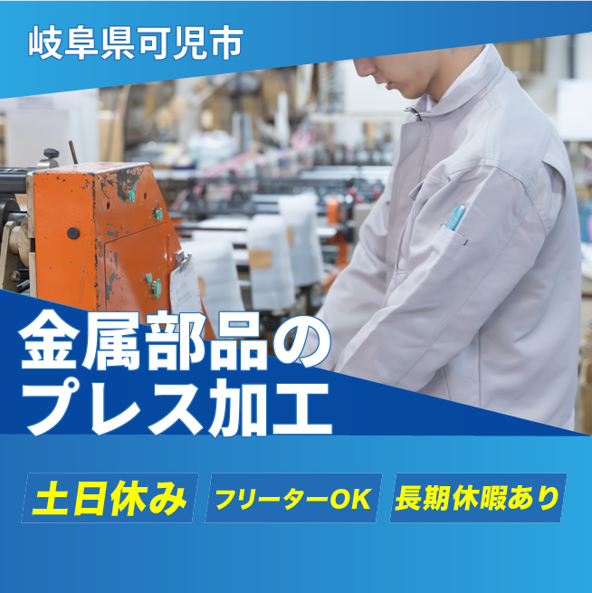 約303万円 交通費 支給あり 応募の流れ 本ページ内<応募する>ボタンより、必要項目をご入力の上、ご応募ください。 勤務地 【勤務地】岐阜県可児市実際の就業先:岐阜県可児市土田 勤務時間 【勤務地】【日勤】