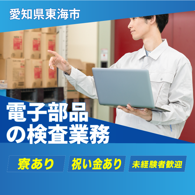 給与詳細 月収例 196,000円 時給例 1,225円 勤務地 愛知県東海市 仕事内容 電子機械部品の検査業務