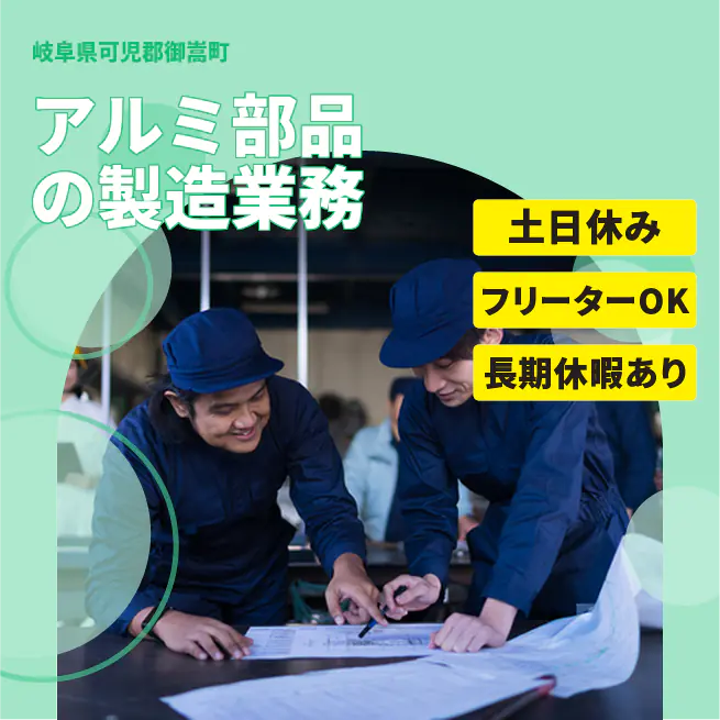 給与詳細 月収例 195,000円 時給例 1,219円 勤務地 岐阜県可児郡御嵩町 仕事内容 自動車部品製造のマシンオペレーター