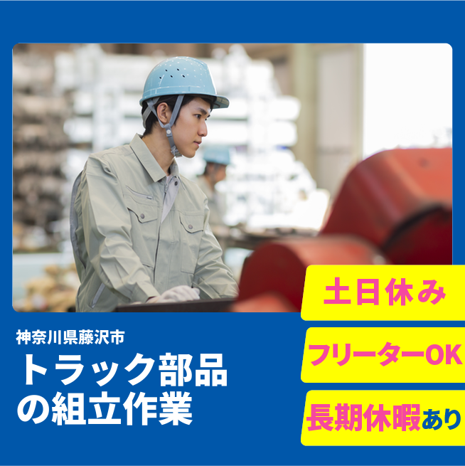 給与詳細 月収例 232,000円 日給例 11,600円 勤務地 神奈川県藤沢市 仕事内容 トラック組立ラインでの各種作業